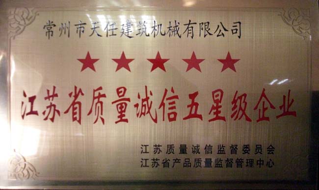 江蘇省質(zhì)量誠(chéng)信五星級(jí)企業(yè)